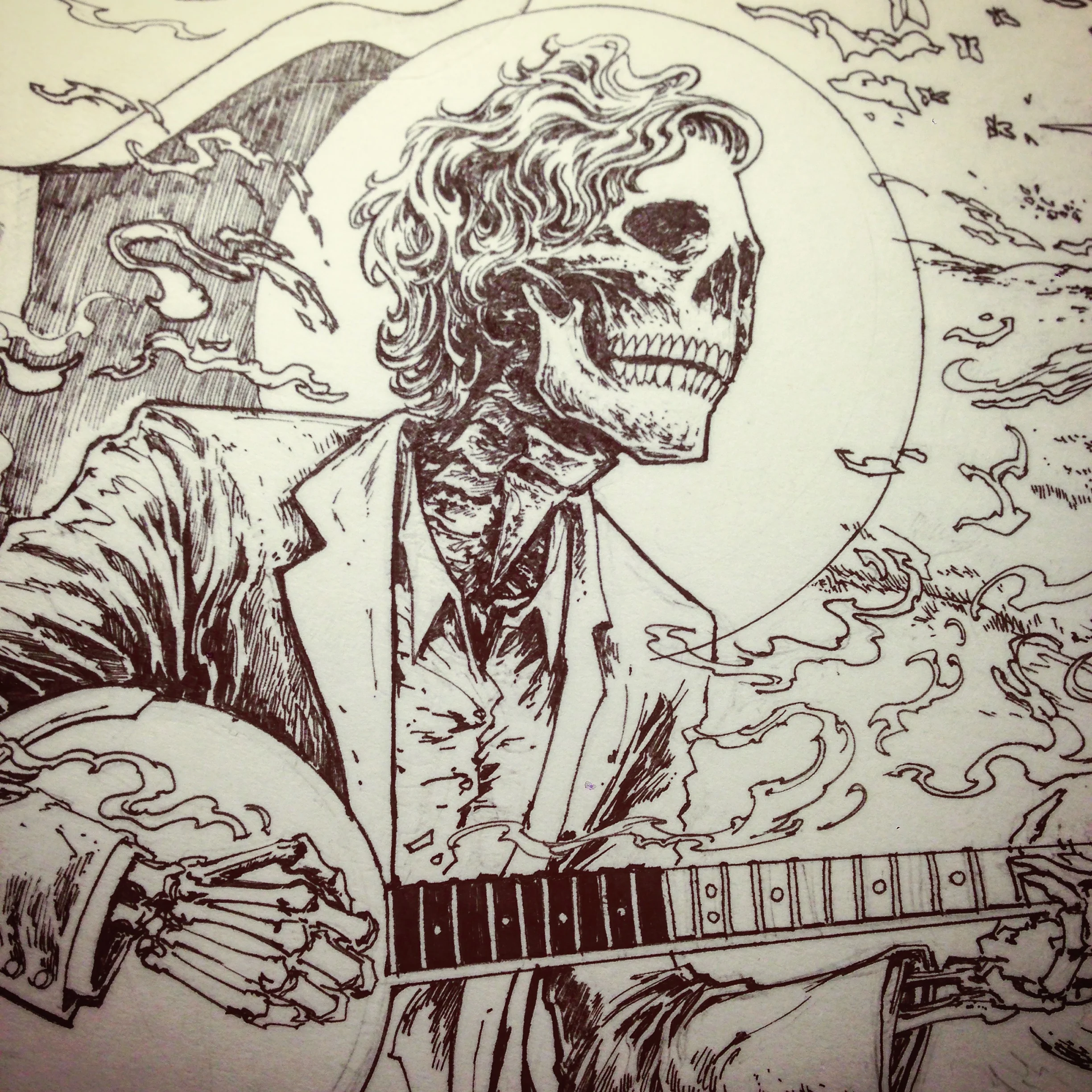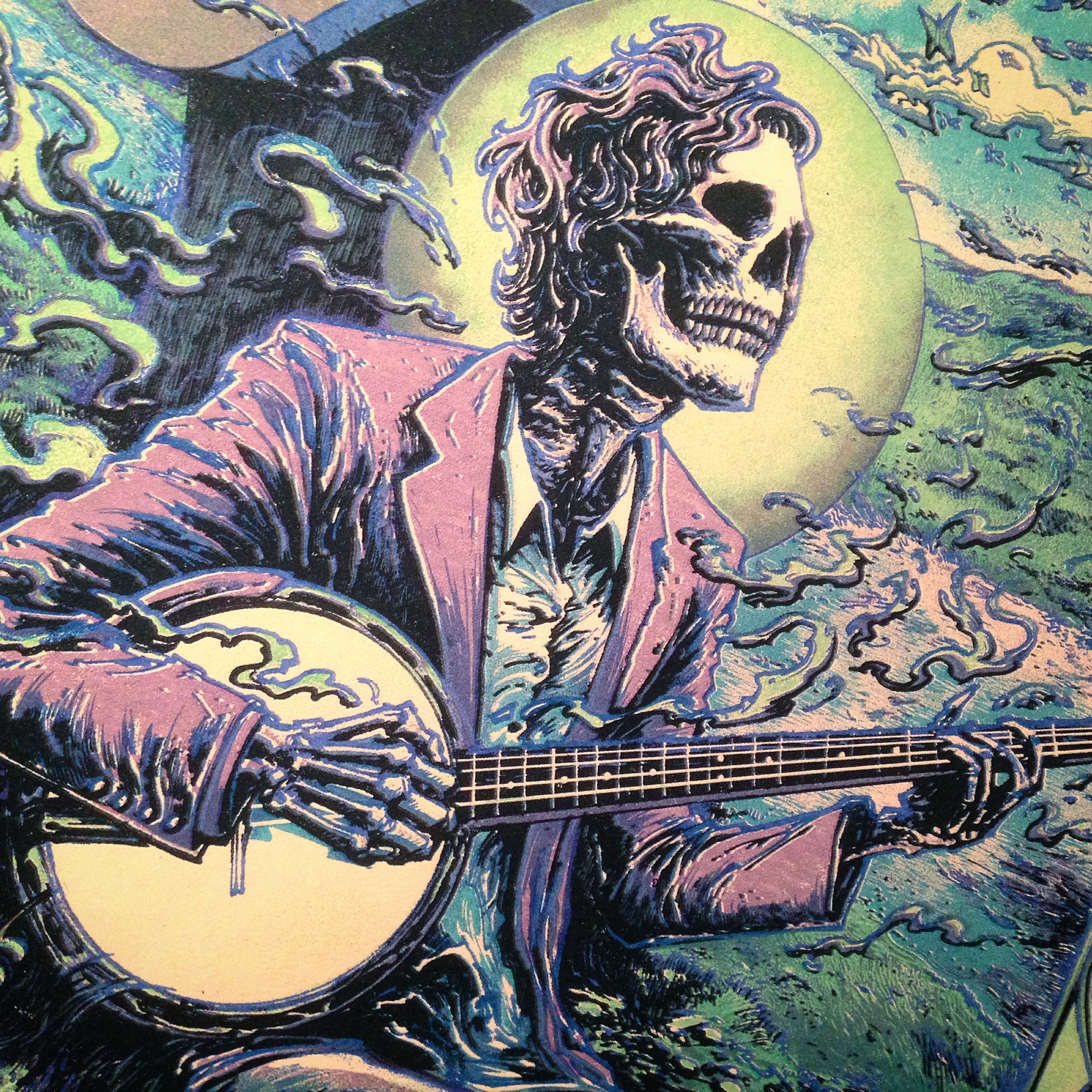 I'd already done the conceptual legwork in the previous poster, so I took the same concept through my process again, with a different emphasis to produce the feeling of a sequel or a series. I didn't feel like stressing over reinventing the wheel. This idea had legs. Also, I didn't even notice until the poster was released that the concert date was Jerry Garcia's birthdate. Happy 73rd, Jerry!